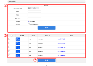 さらにギフト資材を追加する場合[選択]ボタンをクリックします。別ウィンドウで「ギフト資材選択」画面が開きます。(↓) - ギフト資材にかかる手数料が表示されます。