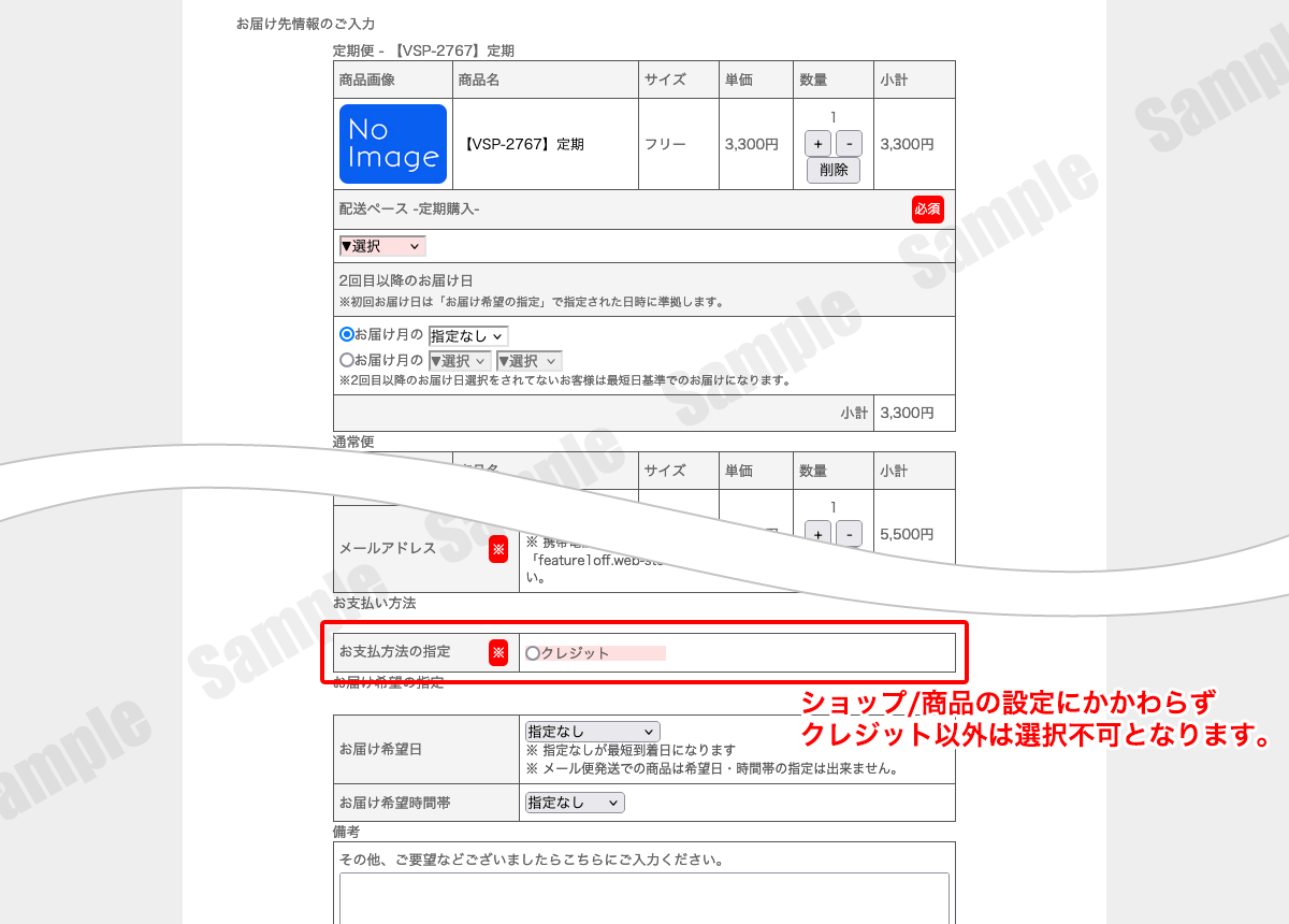 複数の定期商品を配送おまとめ(クレジット払い)で購入した後、会員がマイページで1つの定期受注のクレジット情報を変更されますと、おまとめ対象の定期受注のクレジット情報も更新されます。