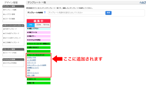 「テンプレート編集」の一覧メニューに上図③で登録したテンプレート名が表示されます。(テンプレート名称の五十音順)
