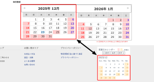- 通常のカート、LPからの購入日が休日だった場合、お届け希望日のプルダウンを以下のように変更させています。