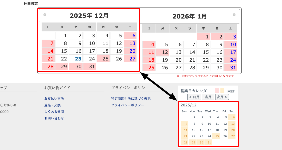 ※ すでに確定した受注や定期購入の次回受注には、後から休日設定を追加しても影響ありません。