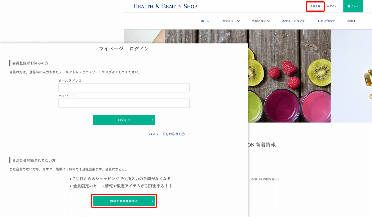 ショップで商品購入と同時に会員登録する方法