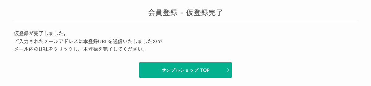 で設定した「仮登録完了メール」および「本登録完了メール」の内容になります。
