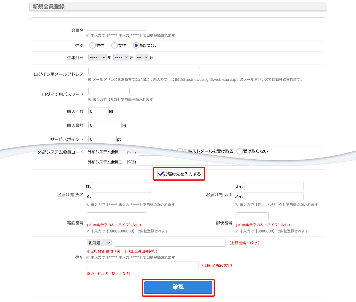 各項目に入力し[確認]ボタンをクリックします。