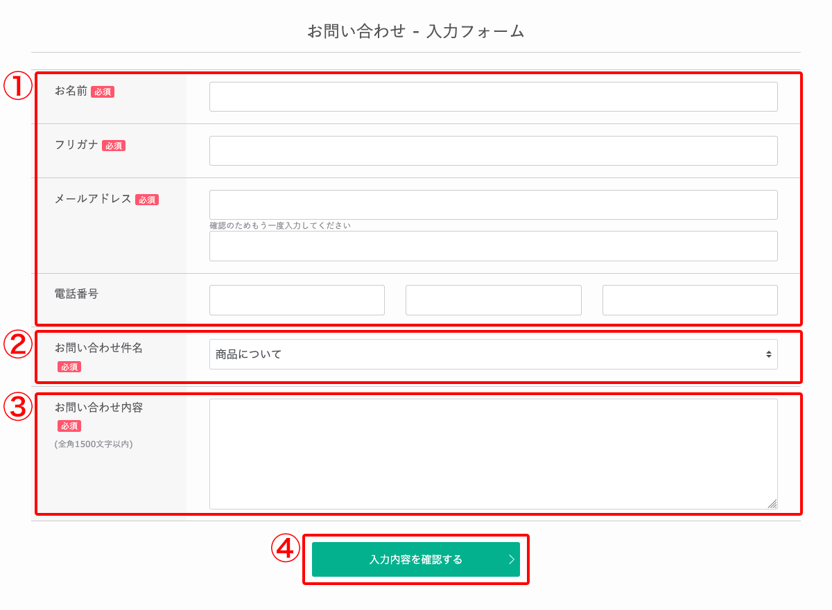 こちらでは、オンラインショップの利用者様がショップのお問い合わせフォーム機能を利用する方法について説明します。