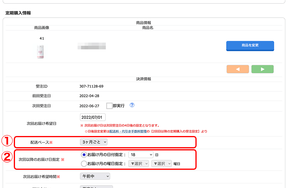 - 次回以降のお届け日指定が同じであること