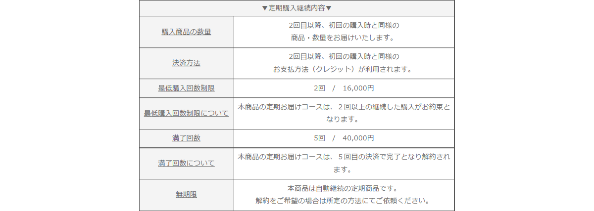 定期購入時の特定商取引法の表示