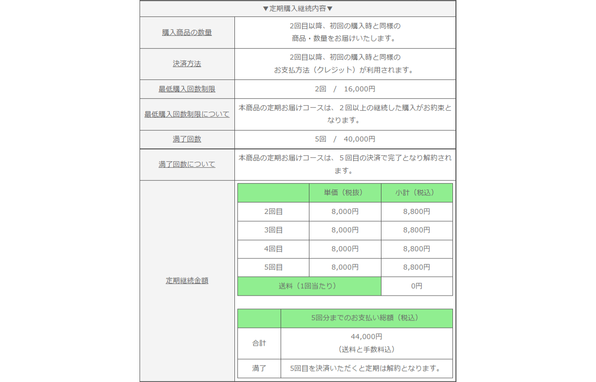 定期購入を継続した際の購入内容を表示します。