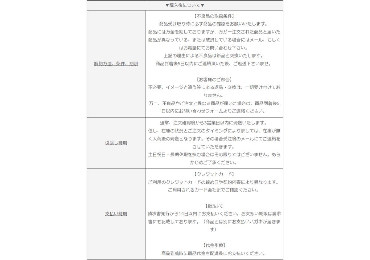 特定商取引法に基づく表記(購入後)